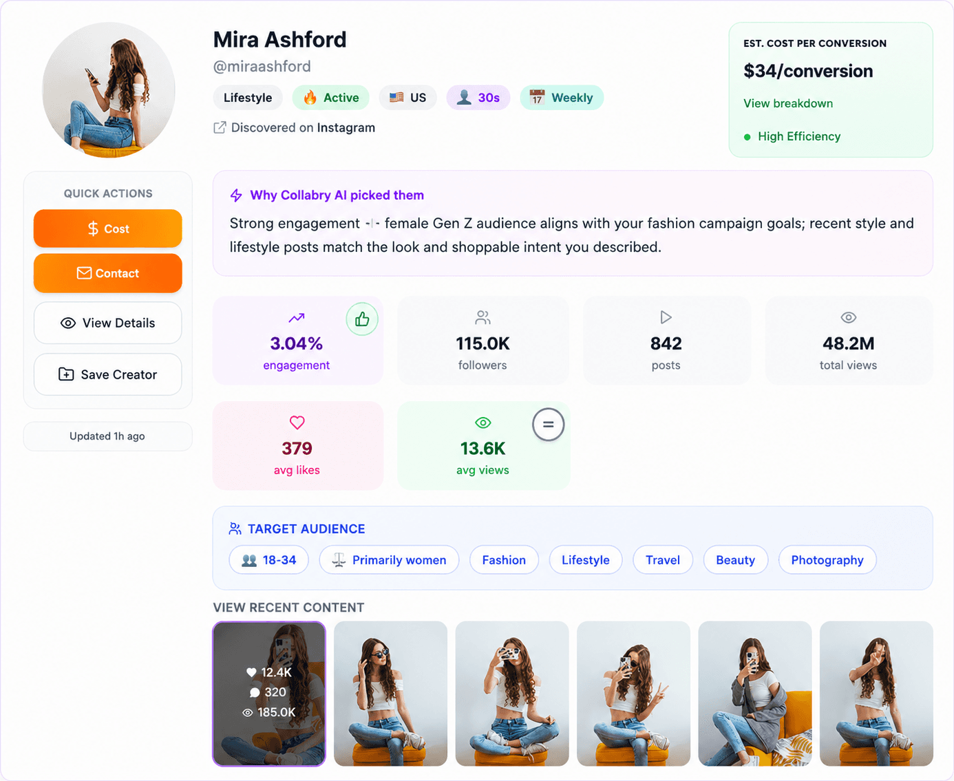 Analyze engagement, audience quality, and estimated campaign costs.